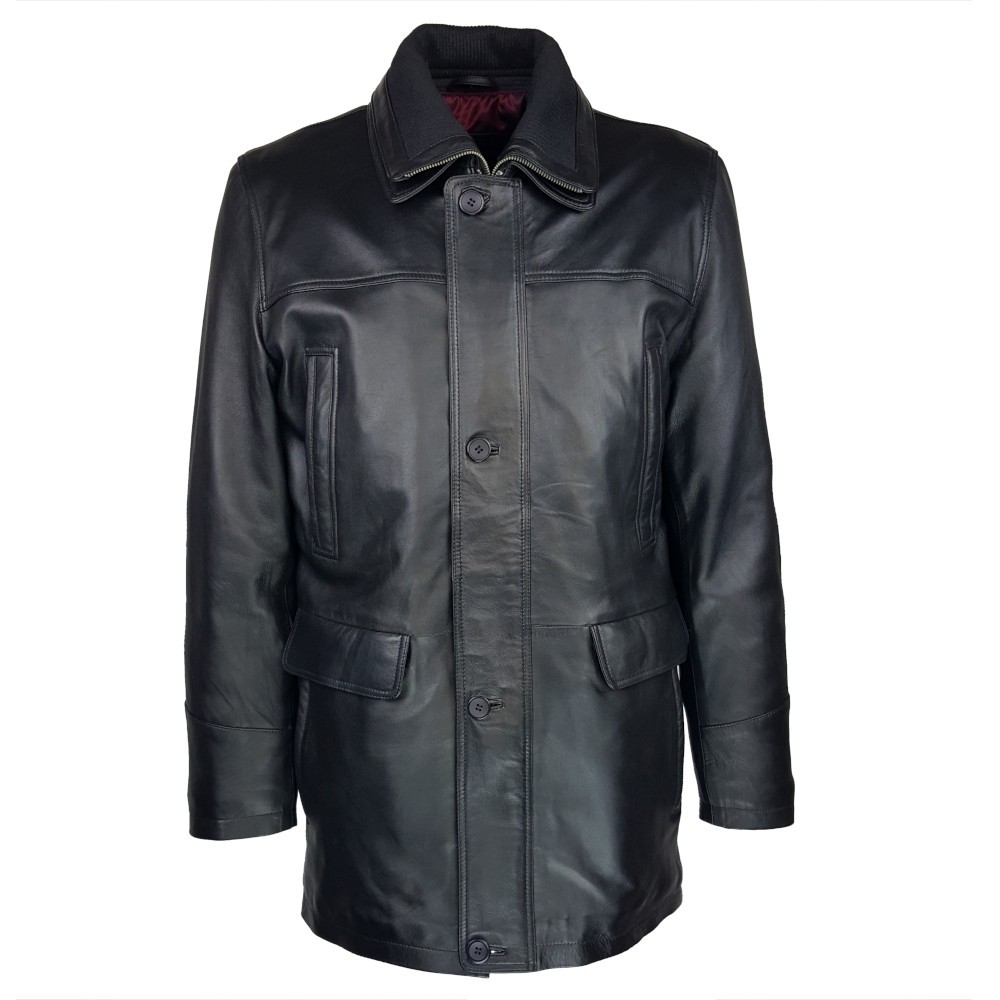 Lamb leather coat with shirt collar four buttons with removable collar six pockets on the front, 2 pockets inside it will bring you great comfort