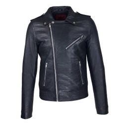 perfecto homme, en cuir d’agneau, motif crocodile doublure en coton, fermeture par zip asymétrique, trois poches zippées sur le devant, vêtement culte et indémodable pour une tenue sobre et décontractée
