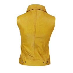 gilet jaune moutarde femme en cuir d'agneau style motard
