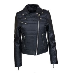 perfecto femme en cuir d'agneau blouson matelassé bi matière